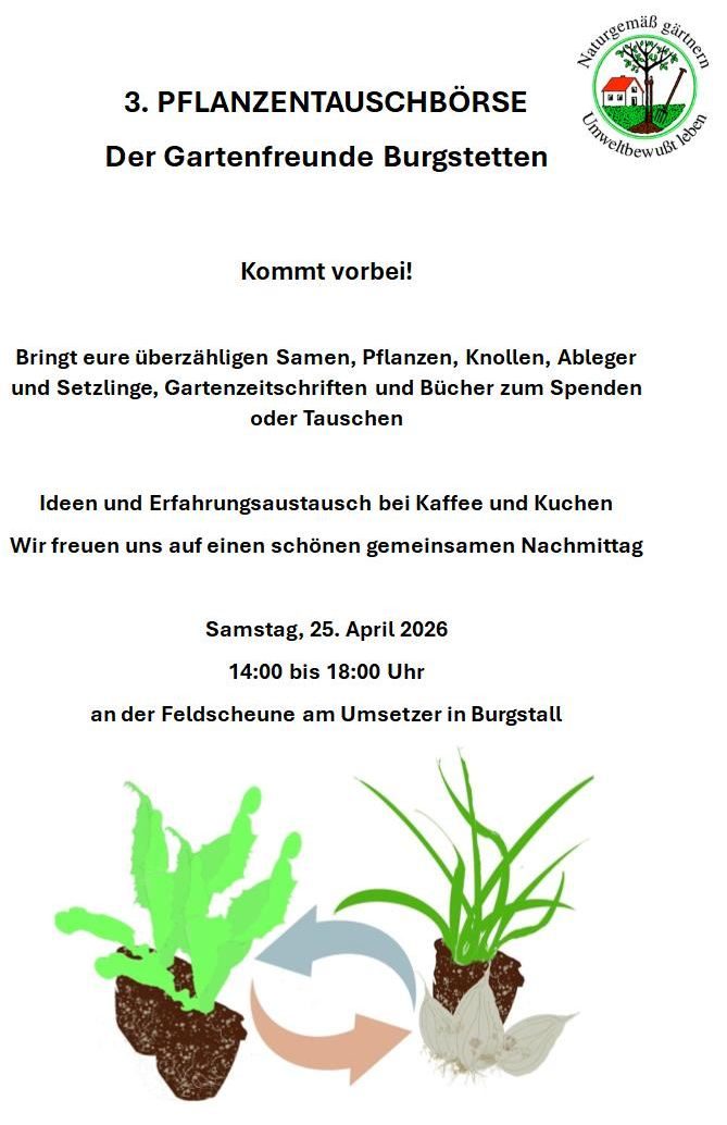 25.04.2026 14:00 Uhr, ‘Tausch und Plausch‘, Pflanzentauschbörse an der Feldscheune